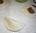 With a small amount of water on your finger or small brush paint a little water around the edge of just half of the circular pastry cut outs, this is to help seal the pastry.